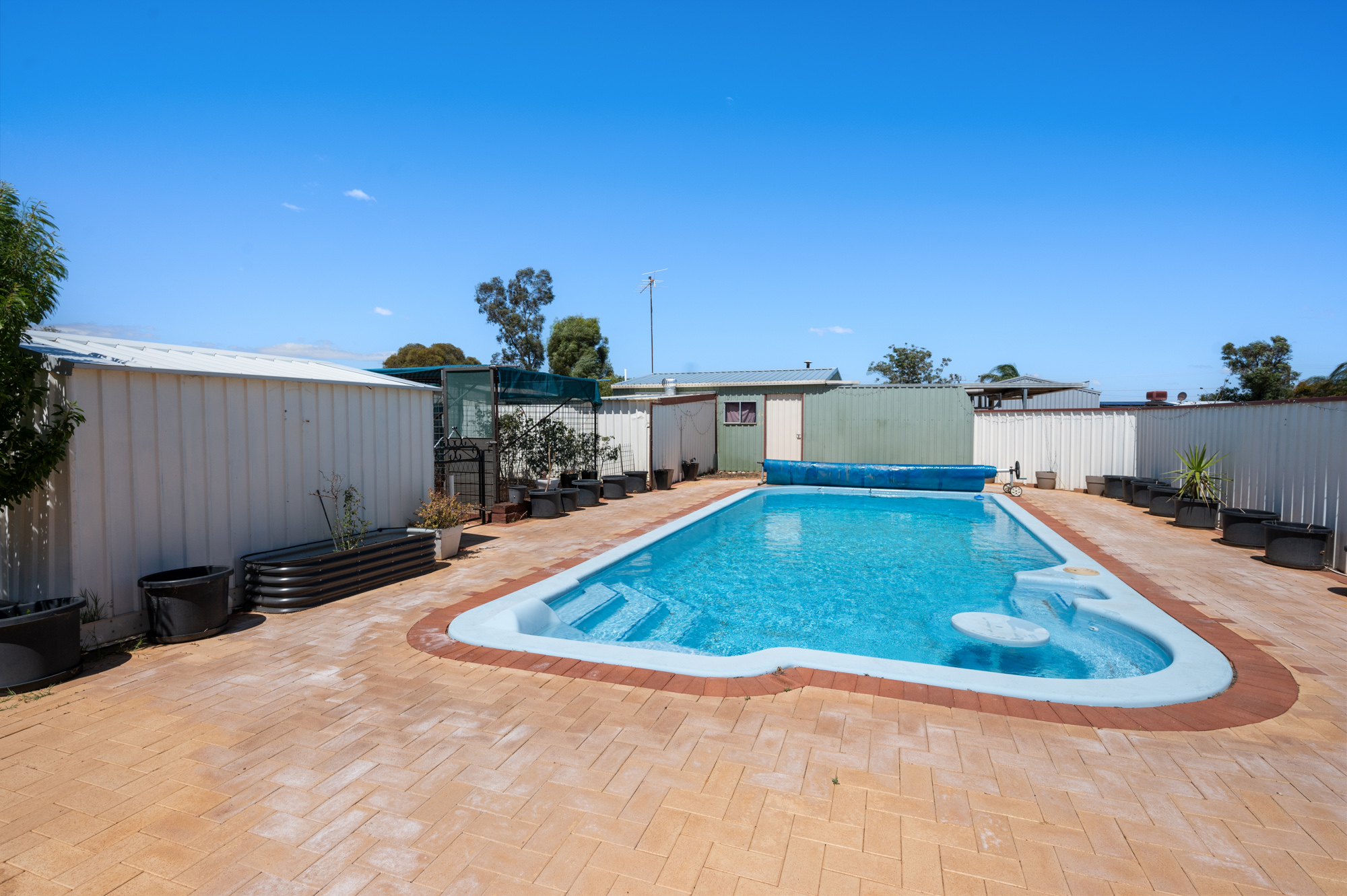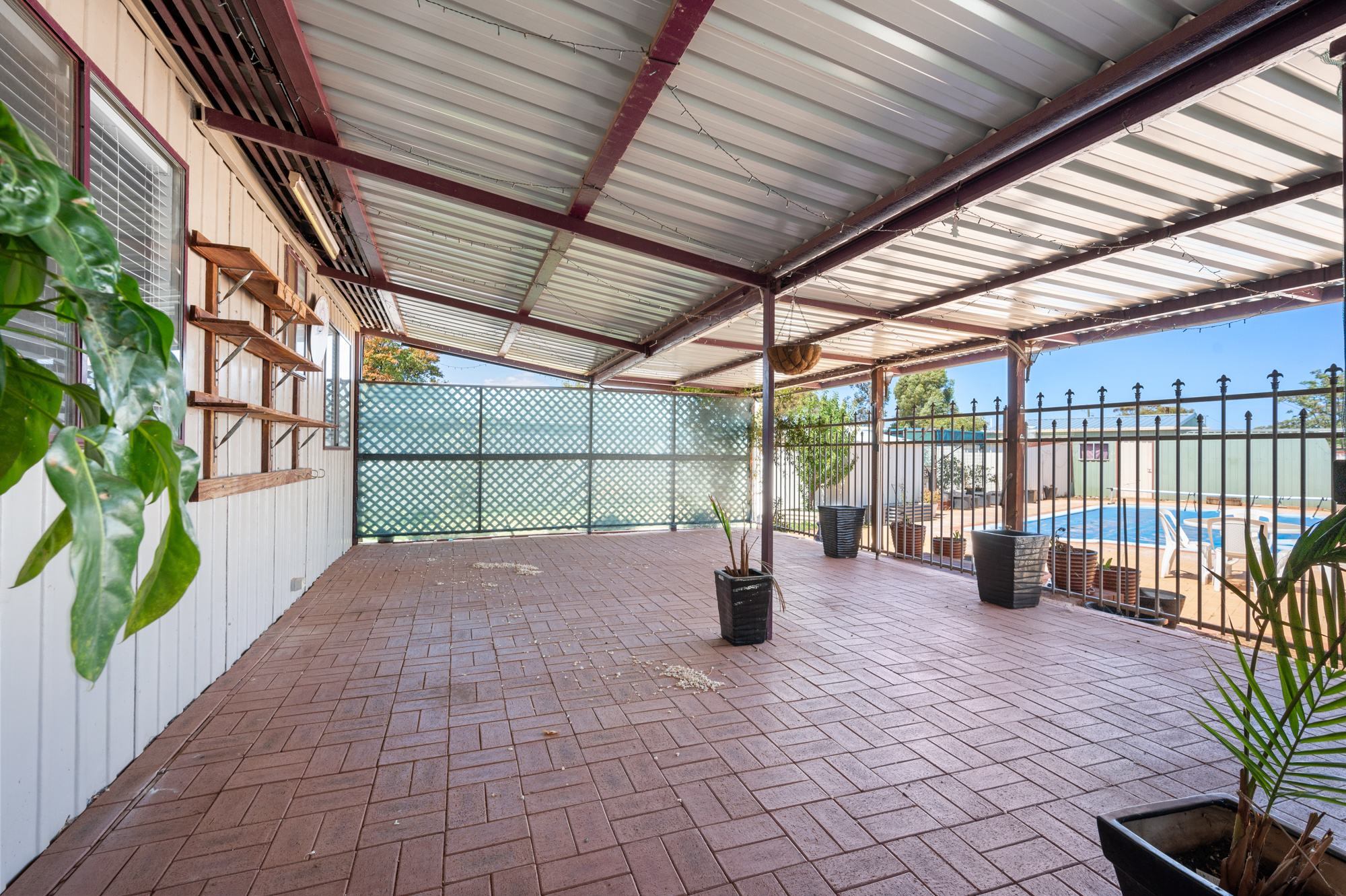 Shaded raised entertaining area overlooking the sparkling below ground pool